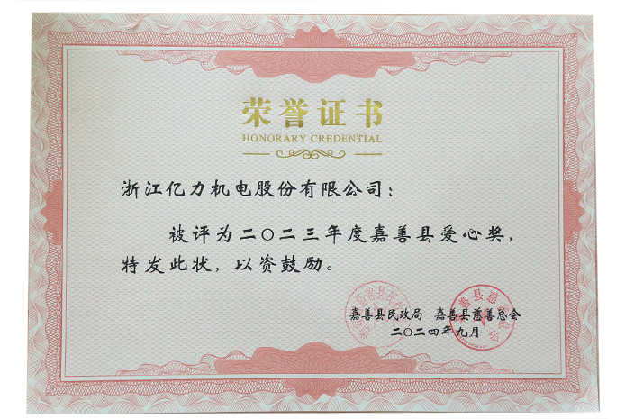 • 被评为县首届工艺设计大赛十佳创新奖、转型升级奖、工业经济发展贡献奖、社会公益事业贡献奖、十佳优秀成长型企业、县级纳税大户,成为嘉善县工商业联合会(总商会)第九届执委(理事)单位